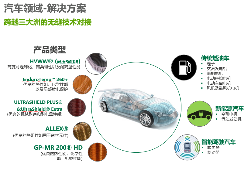 埃賽克斯電磁線(xiàn)擁有百年的歷史, 蘇州工廠(chǎng)主要生產(chǎn)自粘線(xiàn)(BOND E,BOND M,CAB-200) 變頻漆包線(xiàn)(UPS) 220度漆包線(xiàn)(AI),240度漆包線(xiàn)(PI,ALLEX),200度漆包線(xiàn)(CA-200,GP/MR-200);PEEK扁線(xiàn)等,2006年以來(lái)Essex蘇州工廠(chǎng)為中國(guó)及亞洲市場(chǎng)提供與北美同樣品質(zhì)電磁線(xiàn)產(chǎn)品,服務(wù)于汽車(chē),能源,工業(yè),商用民用行業(yè)客戶(hù),以穩(wěn)定的品質(zhì),優(yōu)良的服務(wù)為市場(chǎng)所認(rèn)可。公司專(zhuān)利產(chǎn)品PEEK線(xiàn),HVWW?高壓繞組線(xiàn) 專(zhuān)為800V電動(dòng)汽車(chē)設(shè)計(jì),我們的技術(shù)能使要求電機(jī)重量更輕、電線(xiàn)更細(xì)的客戶(hù)受益。 這項(xiàng)新技術(shù)使運(yùn)行在更高電壓和電流下的耐用,高效和小型化大型電力牽引電動(dòng)機(jī)成為可能,并加快了汽車(chē)工程重大進(jìn)展的上市時(shí)間。 它在歐洲汽車(chē)市場(chǎng)中是獨(dú)一無(wú)二的,它通過(guò)滿(mǎn)足嚴(yán)格的市場(chǎng)容忍度和完美無(wú)缺的空間,為進(jìn)一步的電動(dòng)汽車(chē)創(chuàng)新鋪平了道路。 HVWW?涂覆有擠出工程塑料為EV和其它產(chǎn)品的改進(jìn)的性能,還允許在1000V和局部放電無(wú)導(dǎo)線(xiàn)(PDIV)的高電壓。為什么使用HVWW?滿(mǎn)足您的需求? 高電壓會(huì)產(chǎn)生高熱量。在電動(dòng)汽車(chē)工業(yè)中,耐熱性,柔韌性和反復(fù)應(yīng)力一直是電磁線(xiàn)性能的障礙。我們的工程師接受了挑戰(zhàn),要為卓越的產(chǎn)品完善每個(gè)設(shè)計(jì)元素。 高度可定制:專(zhuān)為滿(mǎn)足特定客戶(hù)要求而設(shè)計(jì)。高度和寬度的各種厚度允許在新的和現(xiàn)有的電動(dòng)機(jī)技術(shù)中實(shí)施。 靈活性:高度靈活的設(shè)計(jì)改善了安裝過(guò)程。這也可以實(shí)現(xiàn)新的設(shè)計(jì)創(chuàng)新,而采用更堅(jiān)固的材料則是不可能的。 溫度:擠出的外層具有出色的耐熱性和可靠性。獨(dú)特的設(shè)計(jì)可以在240°C的恒定溫度下運(yùn)行,而不會(huì)降低性能。